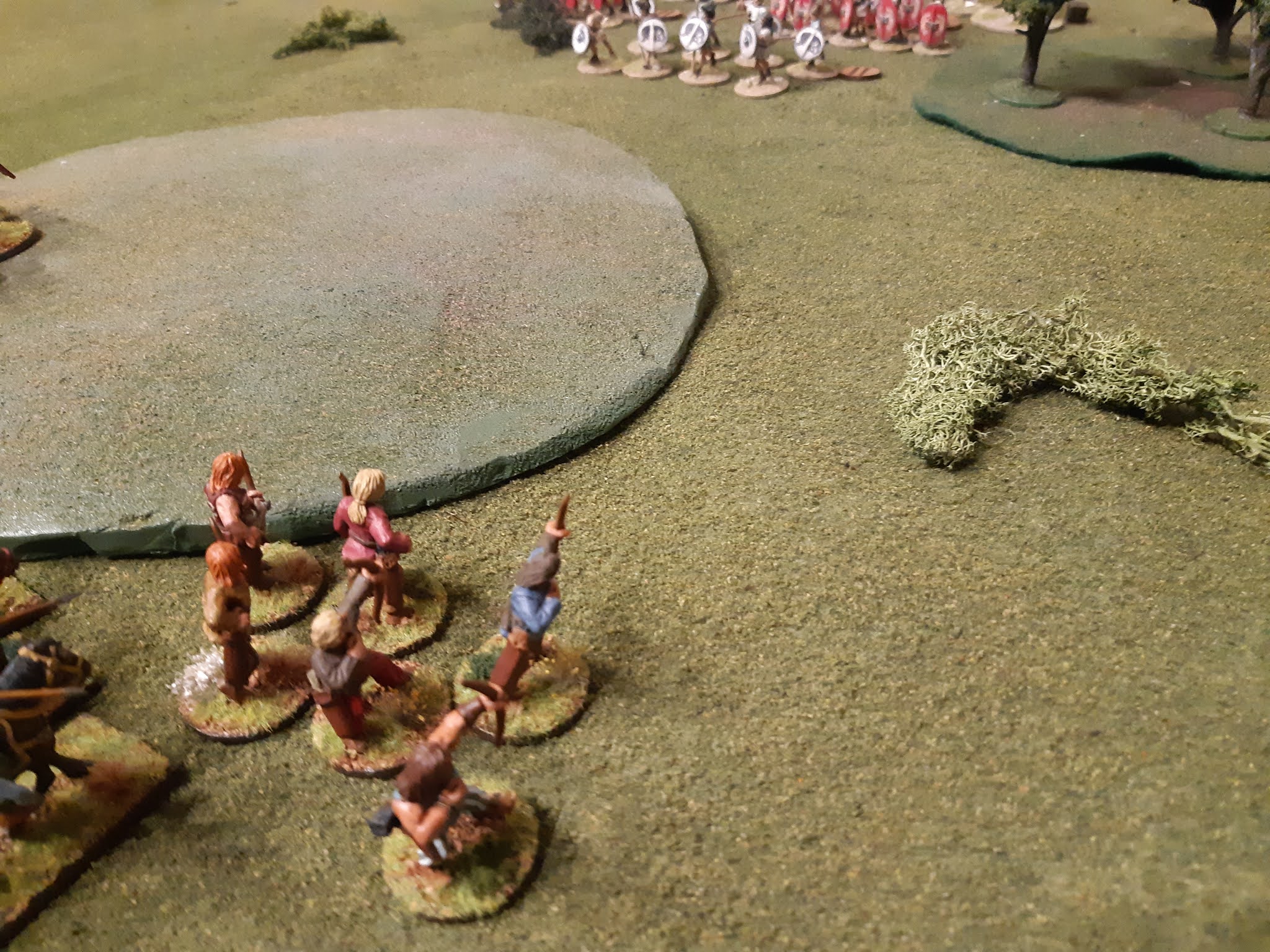 - Les Gaulois ripostent en visant de leurs lances les velites, l'unité romaine est éliminée